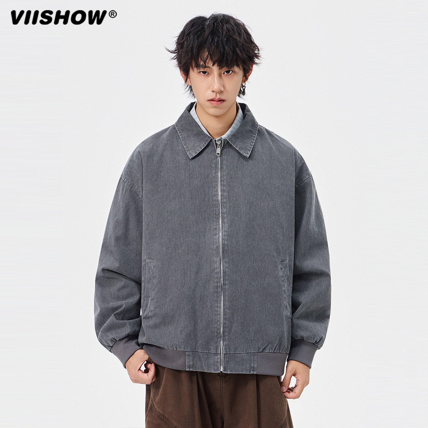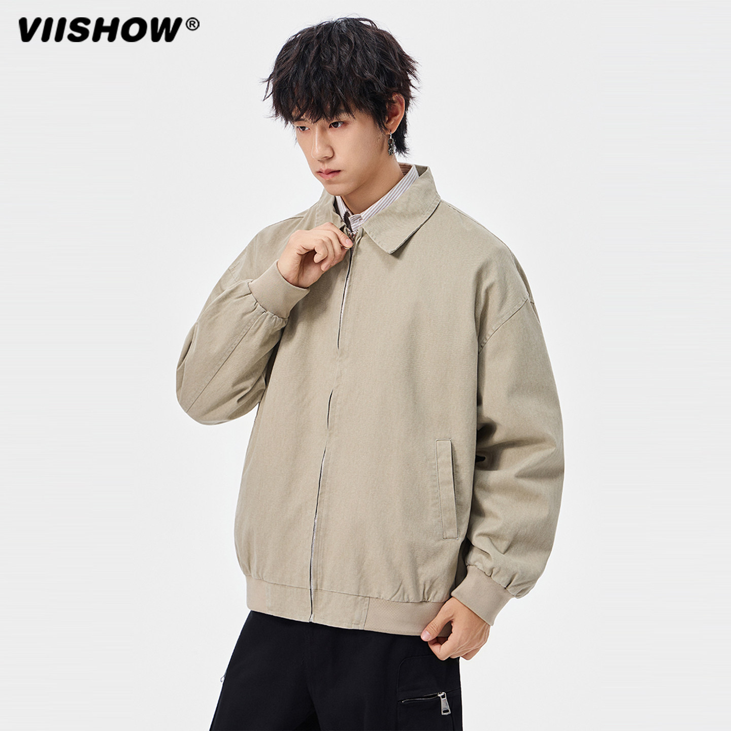 VIISHOW潮牌美式做旧底特律工装翻领夹克男复古宽松小众潮流外套