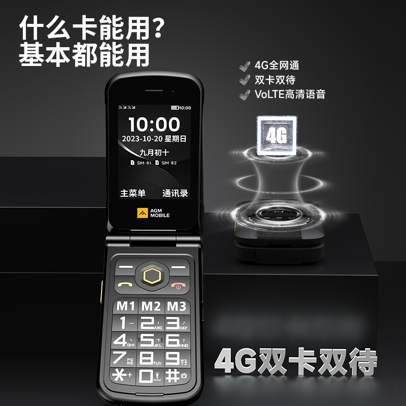 AGM M8 FLIP三防4G全网通折叠翻盖按键老人手机 2.8英寸双卡双待大屏大字体大声音老年机备用功能机