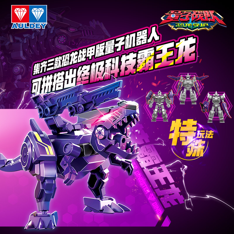 奥迪双钻量子战队恐龙守护拼装积木英雄机甲第二季弹盲盒男孩玩具