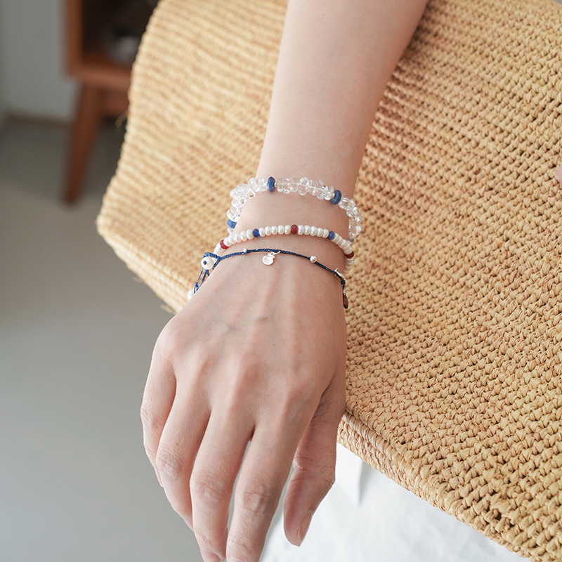 shannai原创「星粼」限量天然随形白水晶手串蓝晶石情绪稳定手链