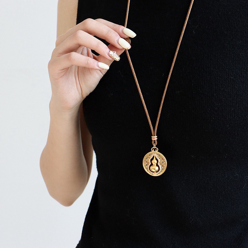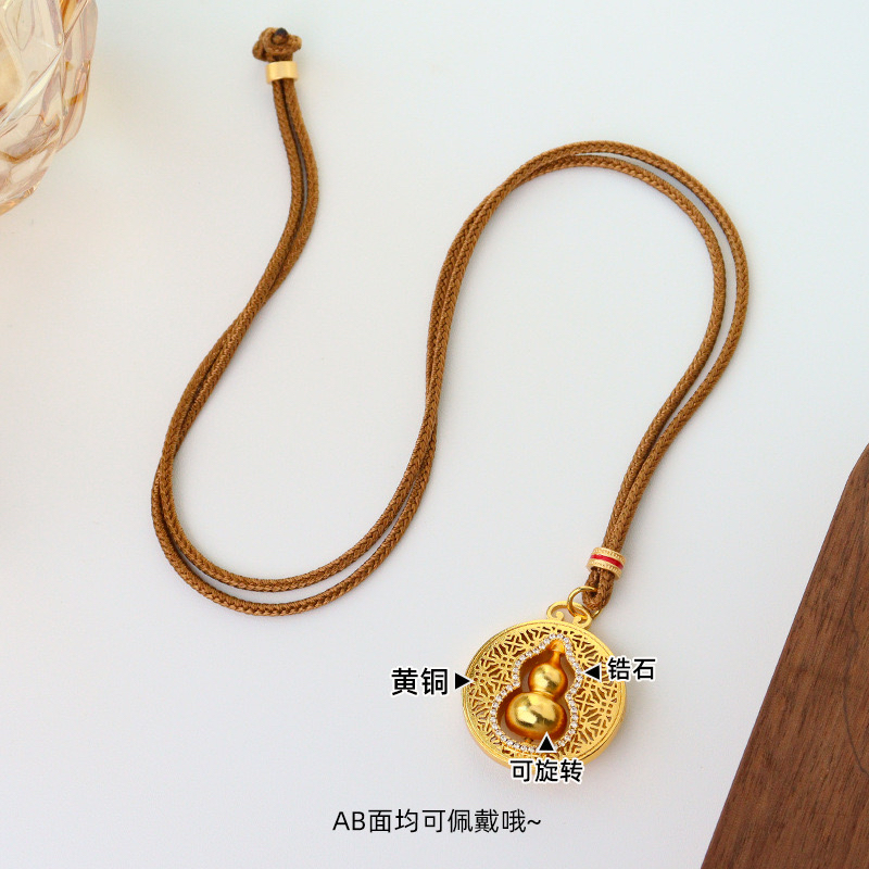新款古法沙金可旋转葫芦吊坠毛衣链长款复古时尚轻奢百搭秋冬项链