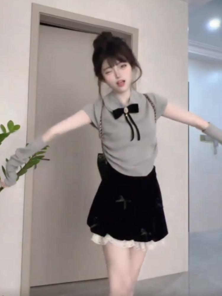 两件套装2024夏季新款学院风小众娃娃领短袖针织衫上衣半身裙女潮