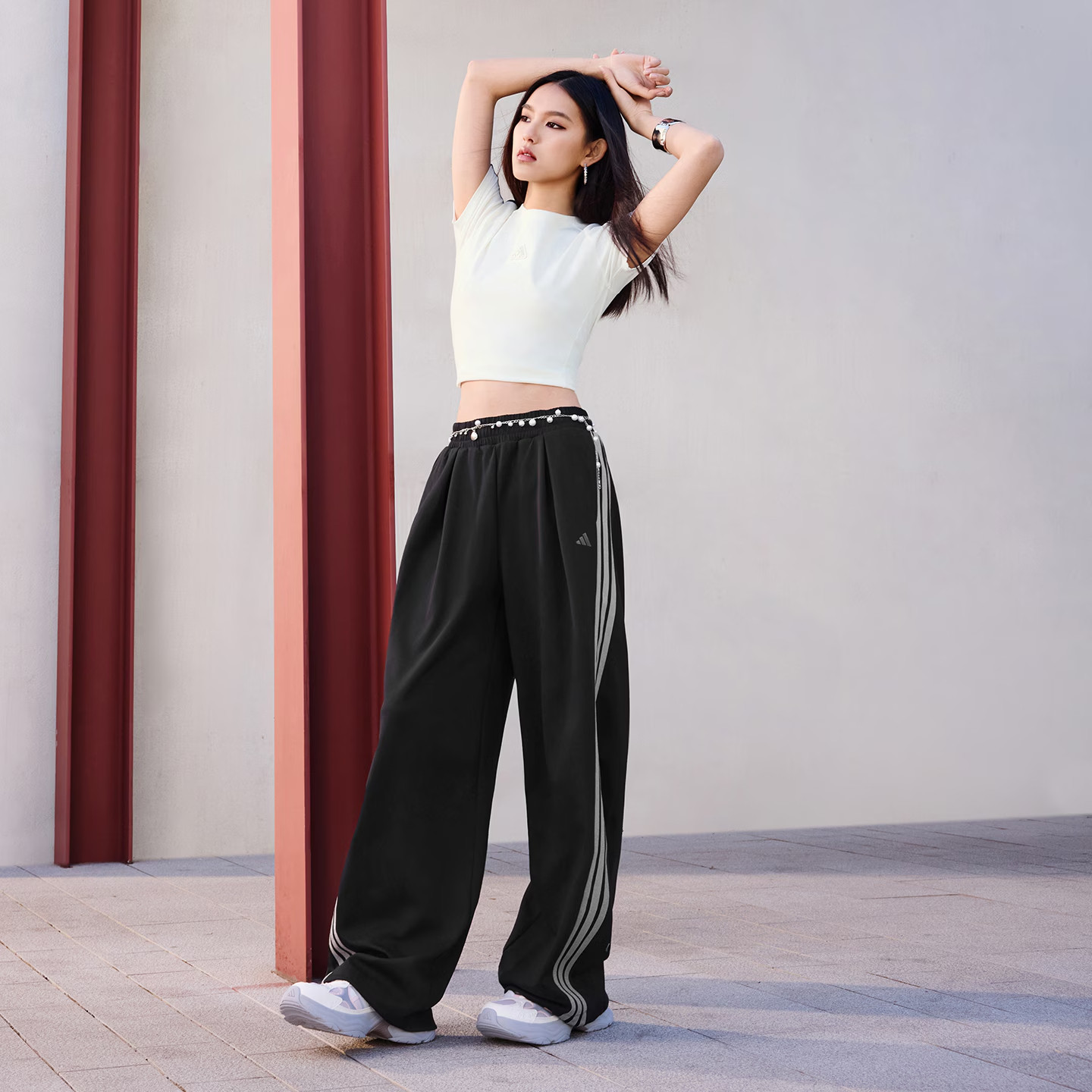 阿迪达斯三条纹舞动系列宽松运动香蕉扭扭裤26春女针织长裤KR7594