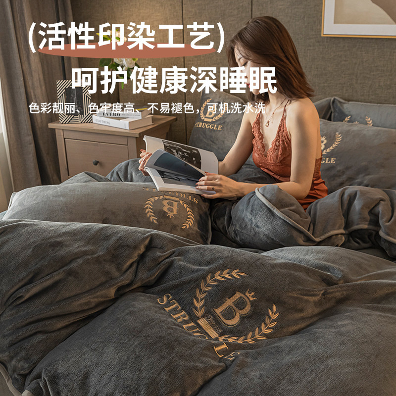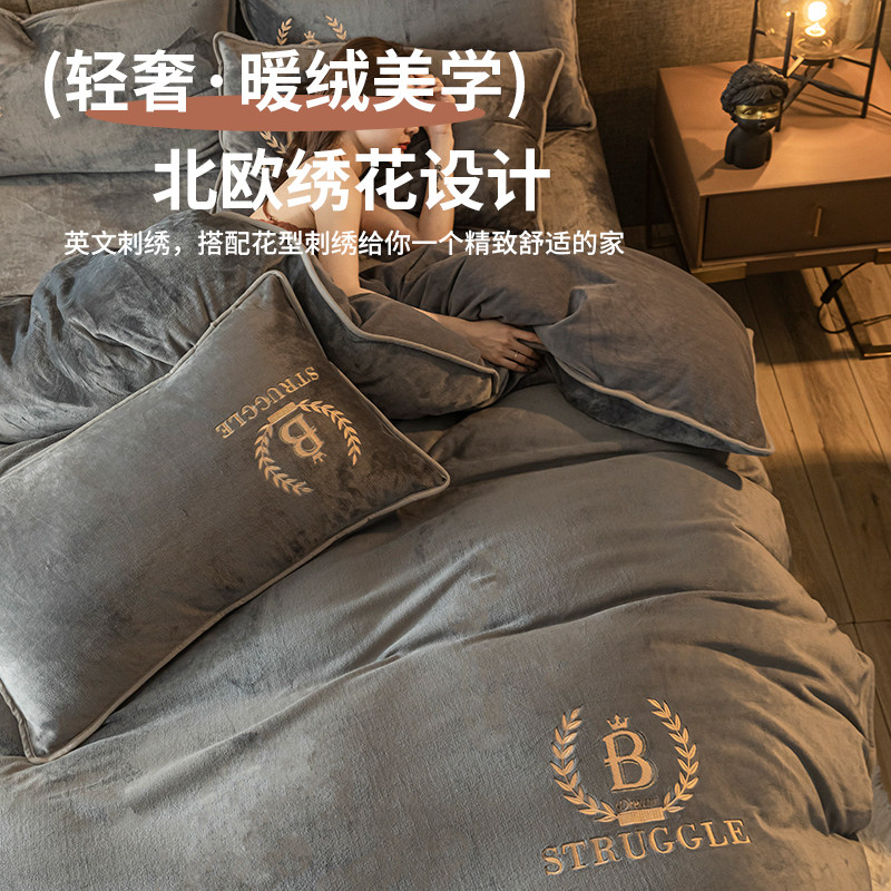 无印良品秋冬加厚保暖牛奶绒四件套法兰绒被套珊瑚绒床单床笠床品