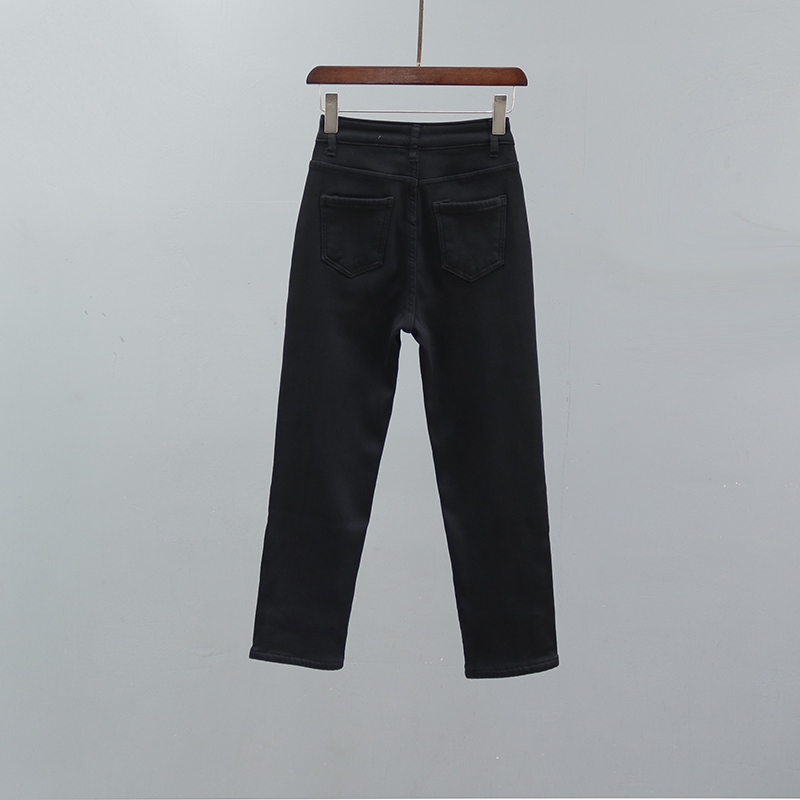 2025秋冬新款直筒牛仔裤女欧货黑色加绒加厚修身九分烟管裤子显瘦