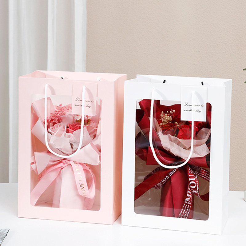 鲜花手提袋橱窗花束包装袋鲜花礼盒花店包装袋大号娃娃礼物袋空盒