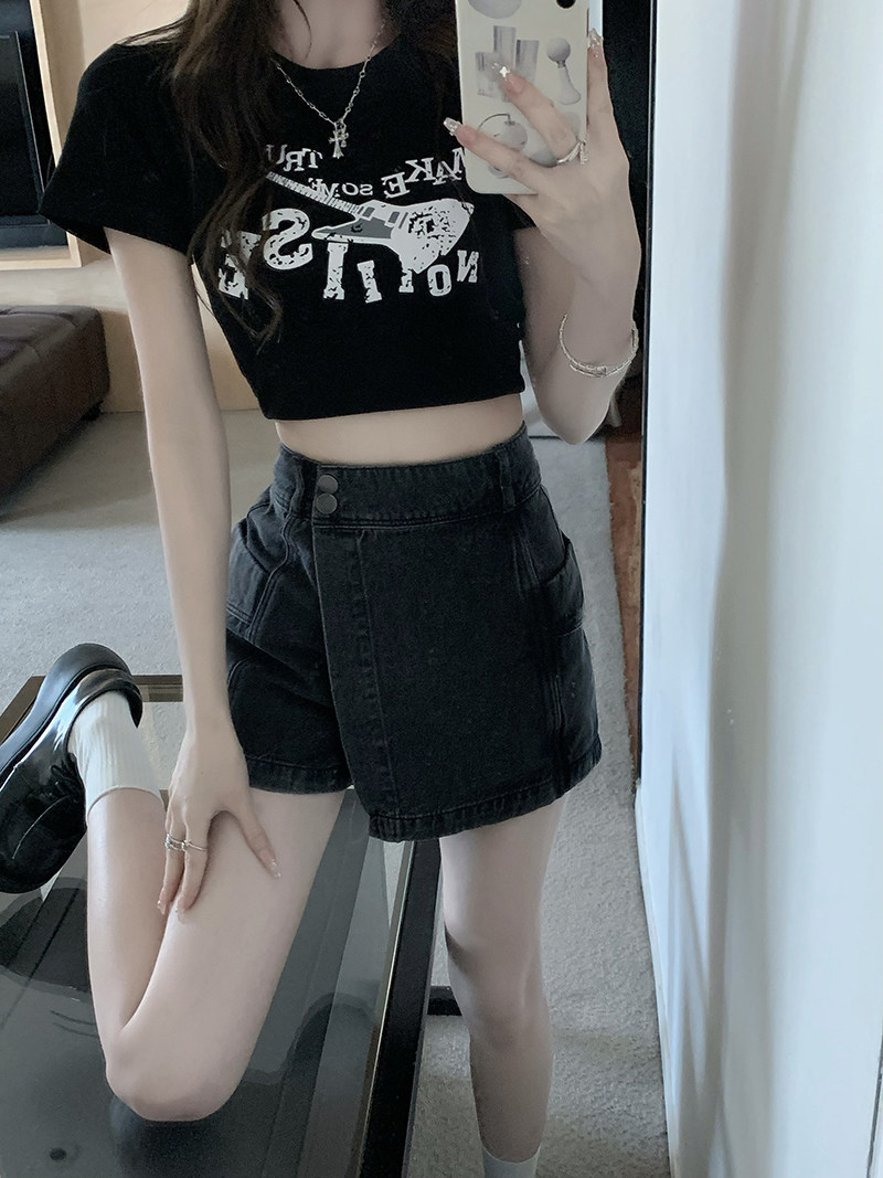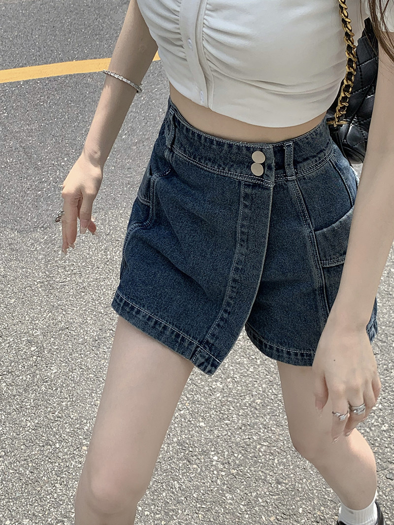 高腰不规则牛仔短裤女夏季大码胖mm显瘦设计感小众a字半身裙裤子