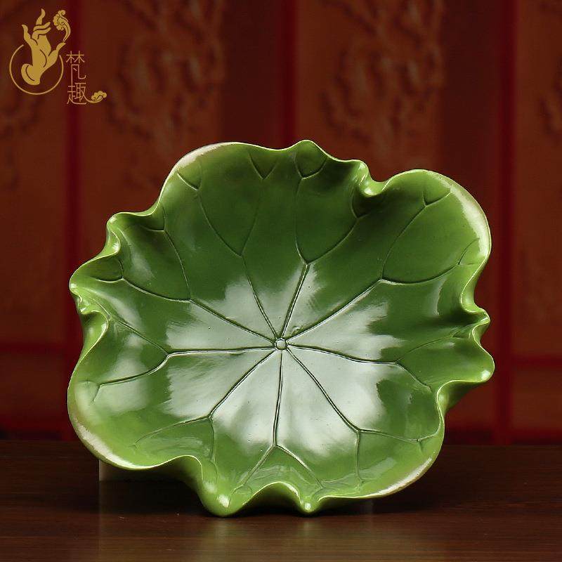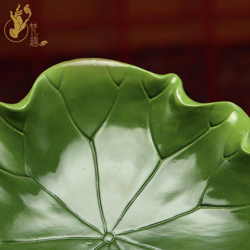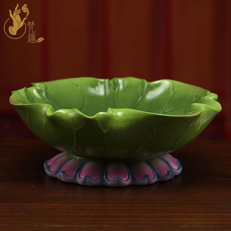 梵趣高脚古莲荷叶果盘陶瓷荷叶水果供盘家居佛前供奉果盘陶瓷