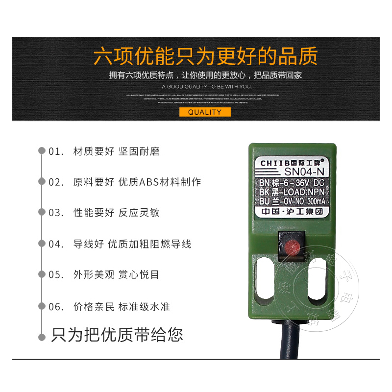 沪工SN04-N方型接近开关传感器直流NPN三线24V常开36V二线电感式