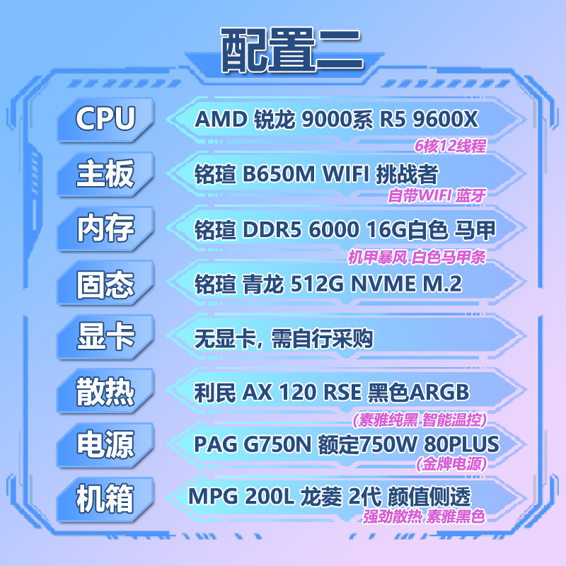 【9600X+5060】电竞主机铭瑄AMD锐龙9000系9700X/7800X3D/9800X3D组装电脑5070/ti游戏直播生产力DIY电脑整机