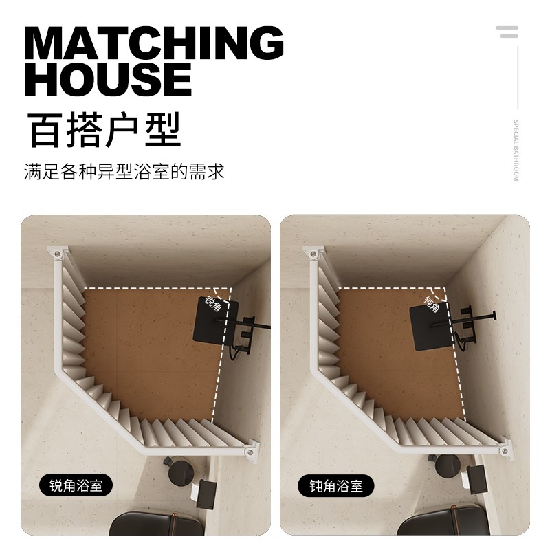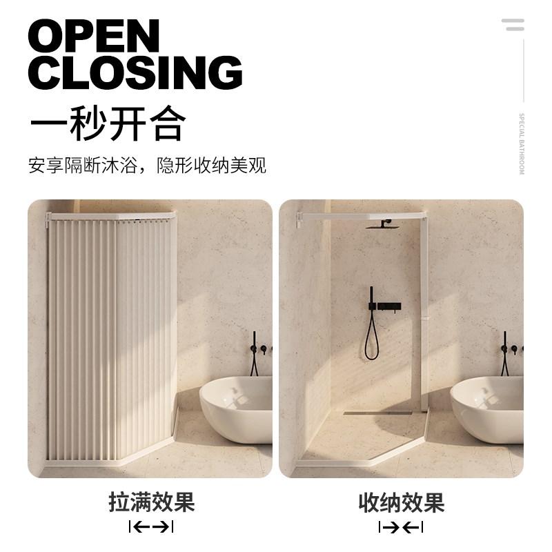 钻石形折叠浴帘浴室免打孔磁吸淋浴卫生间干湿分离防水布异型挂帘