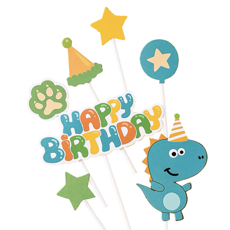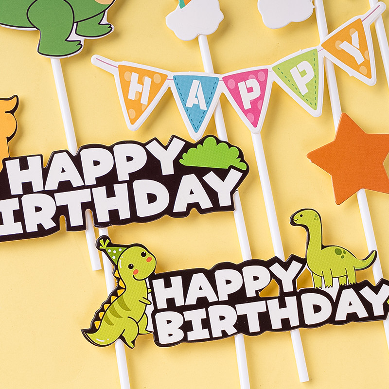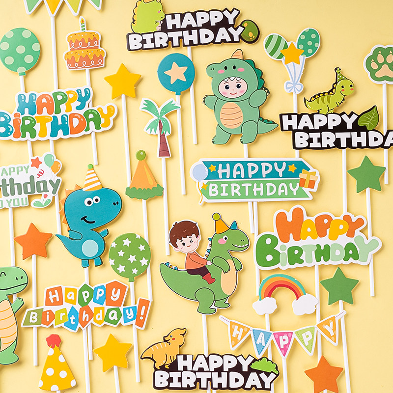 萌系小恐龙烘焙蛋糕装饰插卡宝宝儿童生日男孩周岁场景插牌插件