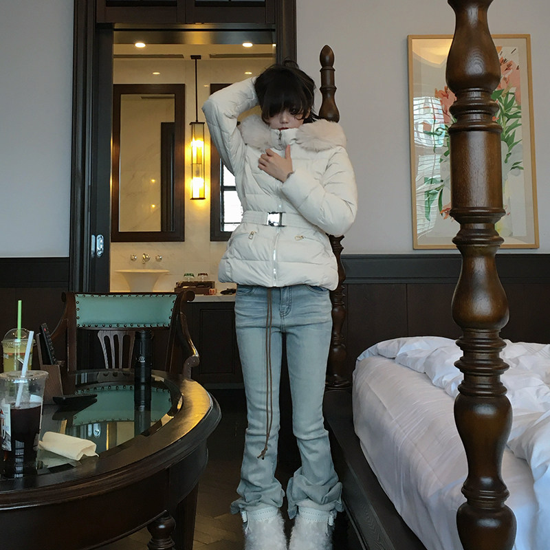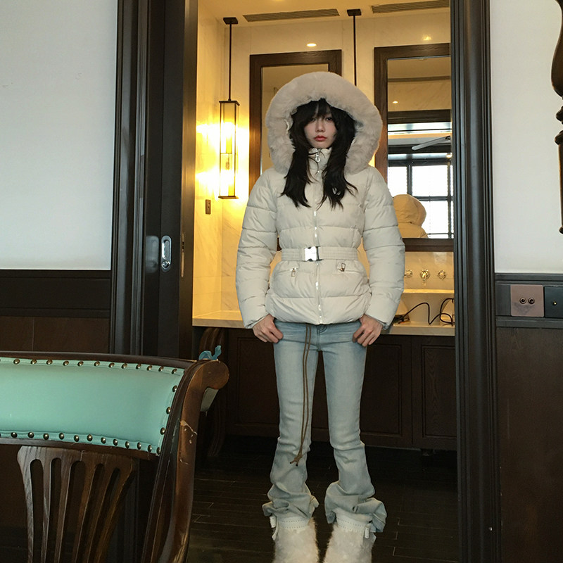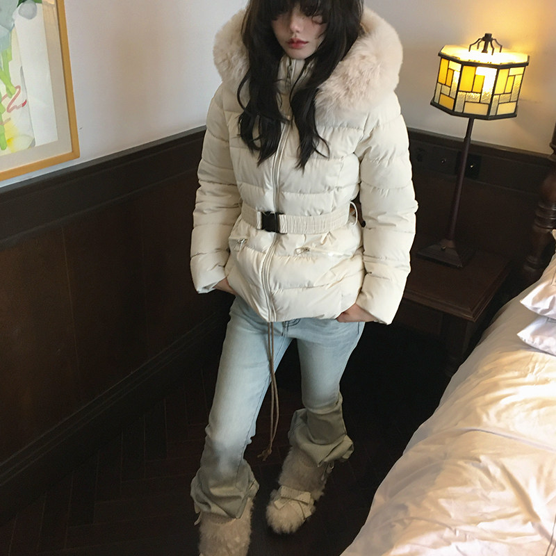 fortylions 中长款古早连帽收腰棉服可调节腰带修身保暖棉服外套