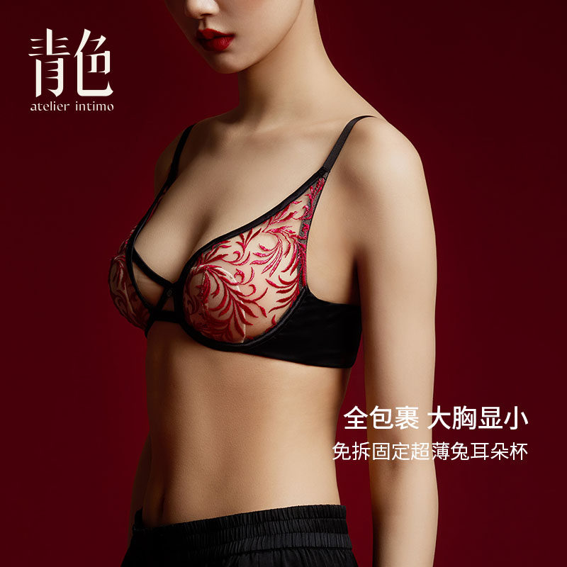 【赤凤】青色瑞士重工刺绣高光纹身款夏季超薄款性感内衣文胸