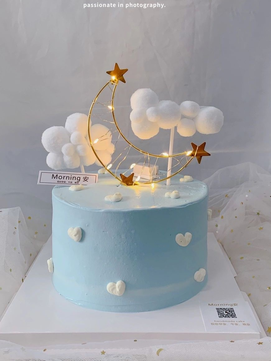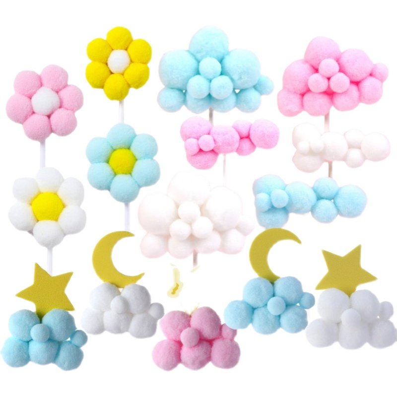 毛球云朵蛋糕装饰插件白云月亮星星小花10个装烘焙插牌摆件配件