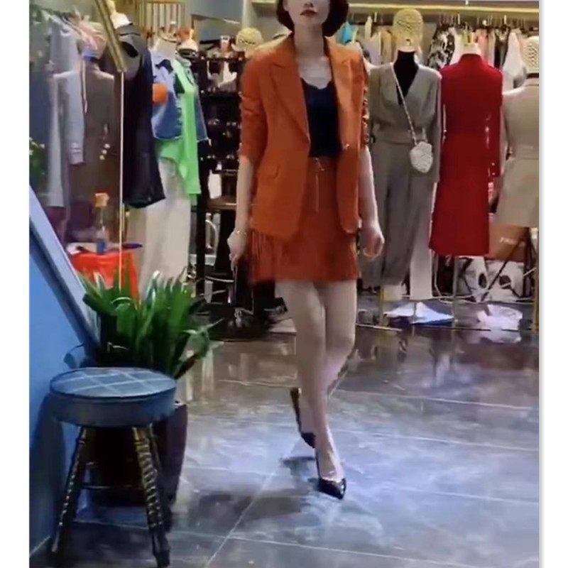 88085大爱美依缘2024秋冬新款时尚橘色套装翻领西服外套半身裙女