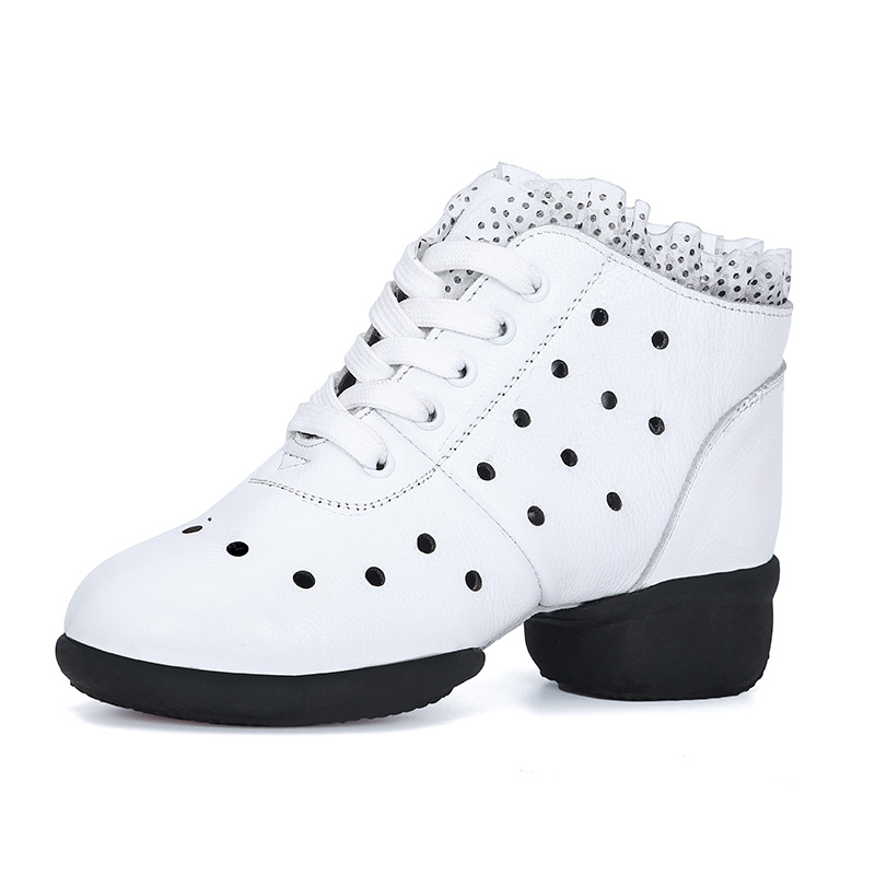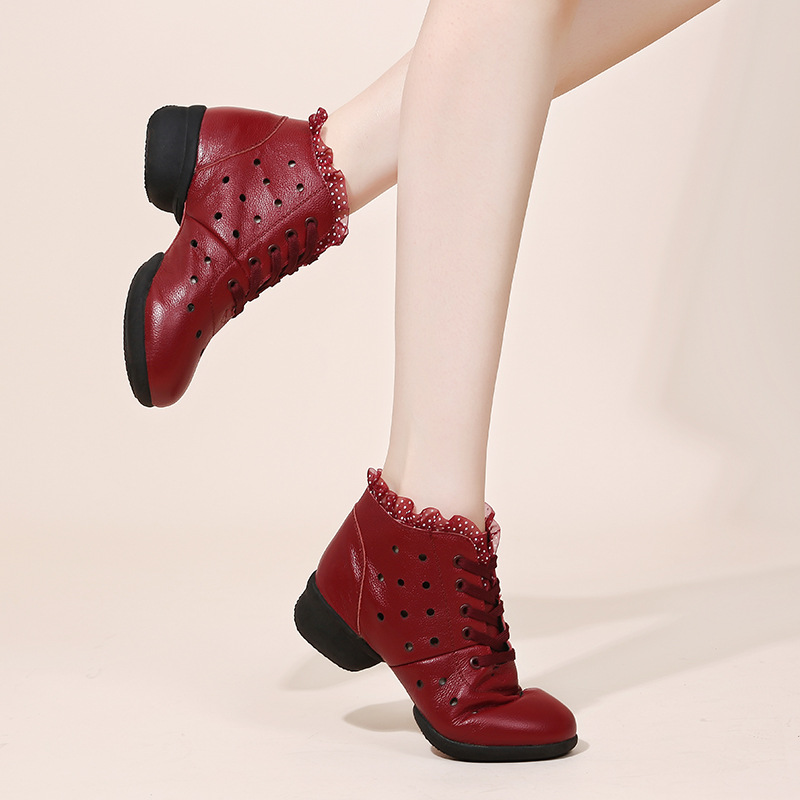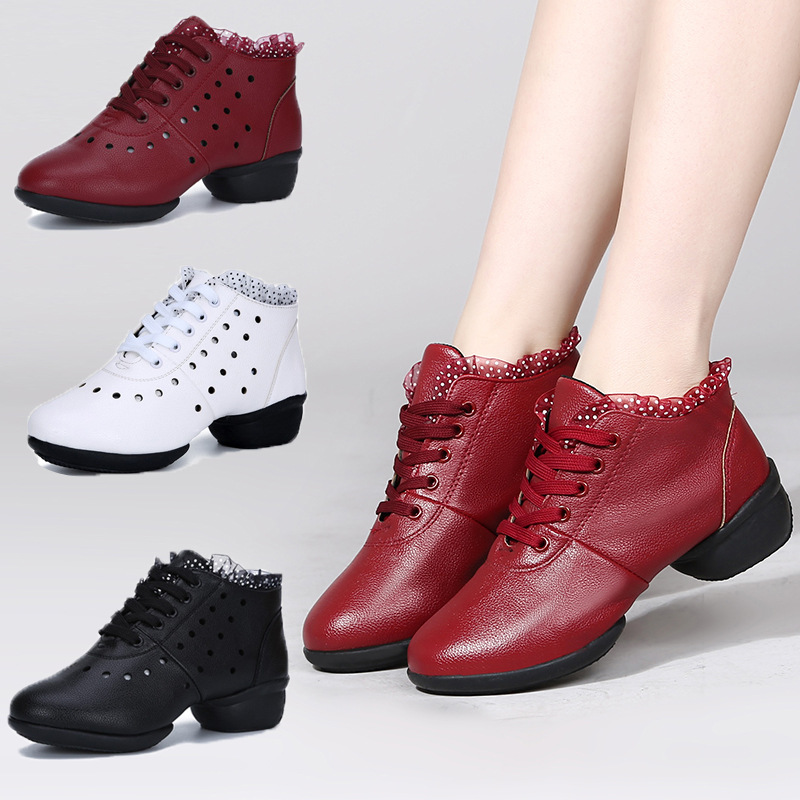 日本品质秋季新款舞蹈鞋女成人广场舞鞋中跟软底水兵跳舞鞋子镂空
