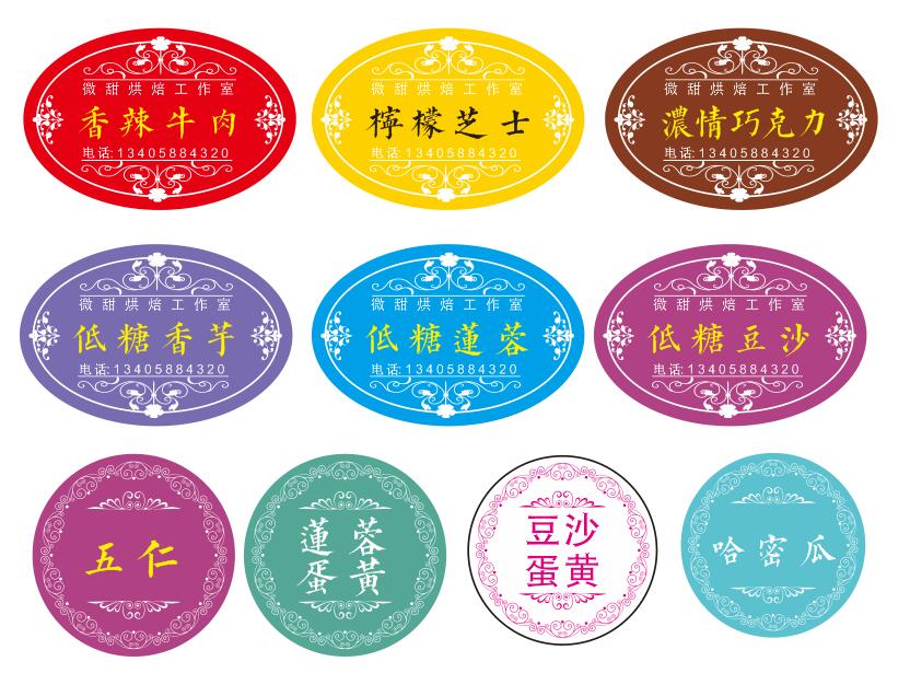 月饼口味贴纸不干胶标签封口贴奶茶杯贴水果贴生产日期标签定制