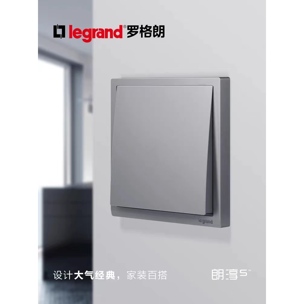 罗格朗开关插座面板朗淳S深砂银5五孔带开关三孔单开双开家用86型