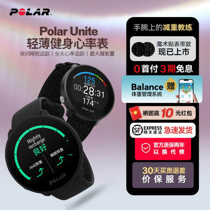 博能POLAR Unite运动减脂心率手表轻薄莱美瑜伽专业健身男女款精准测xinlv表智能减肥睡眠监测身体恢复摄氧量