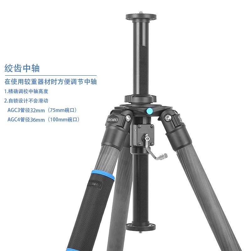 百诺AGC3N/AGC4N绞齿升降中轴单反相机三脚架手摇杆式缓升缓降精