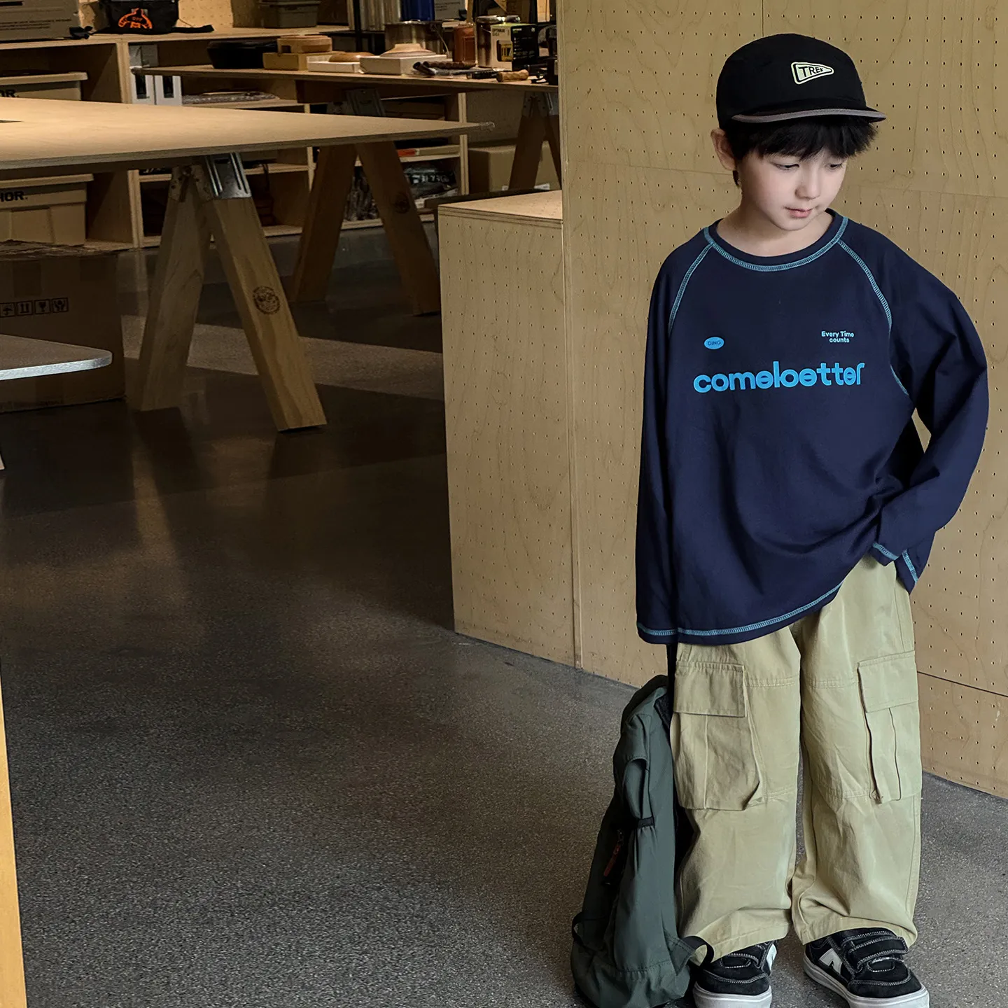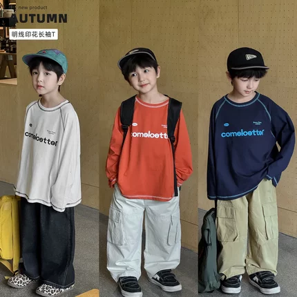 男宝宝洋气明线字母印花圆领长袖打底衫秋季男童休闲内搭T恤上衣