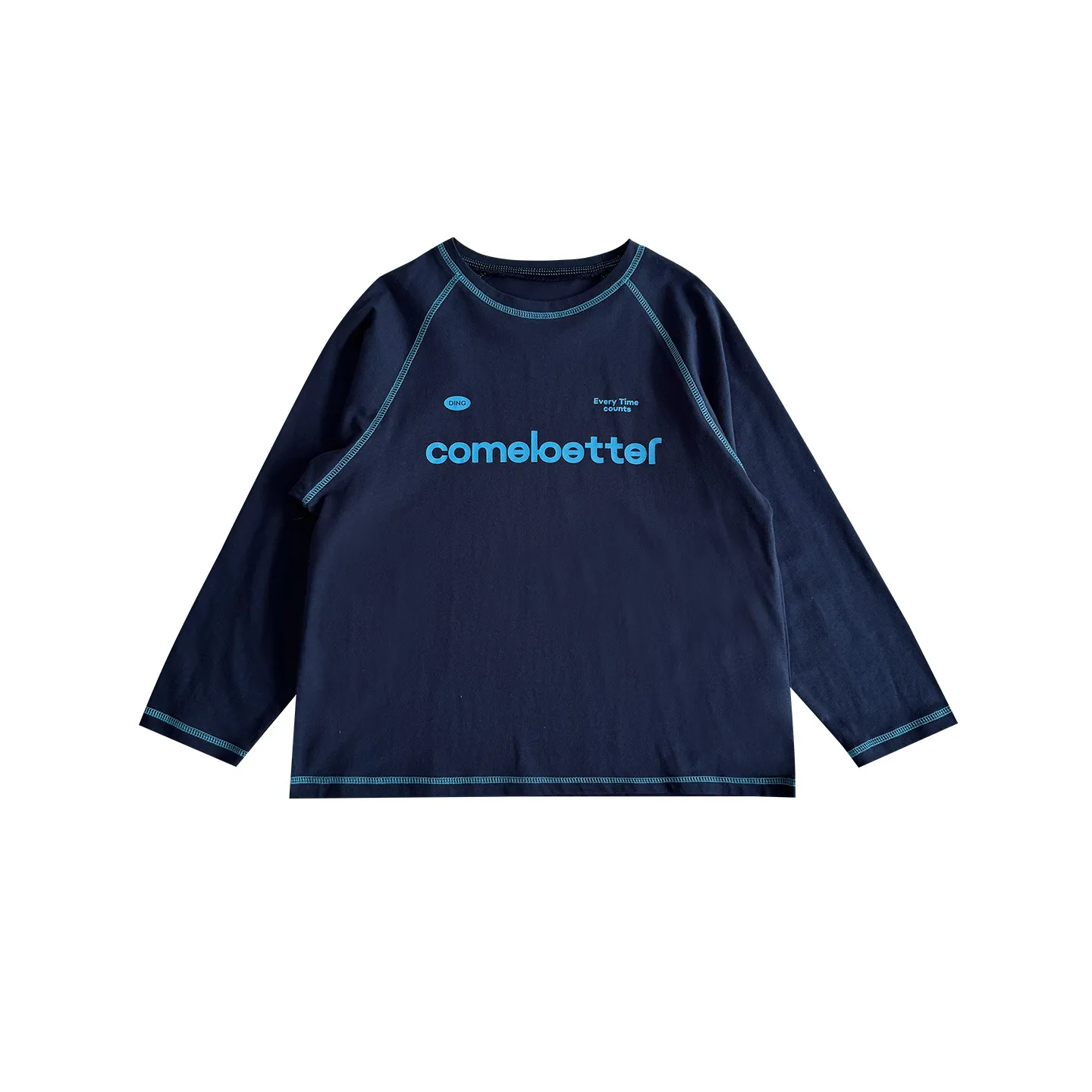 明线字母印花圆领长袖打底衫