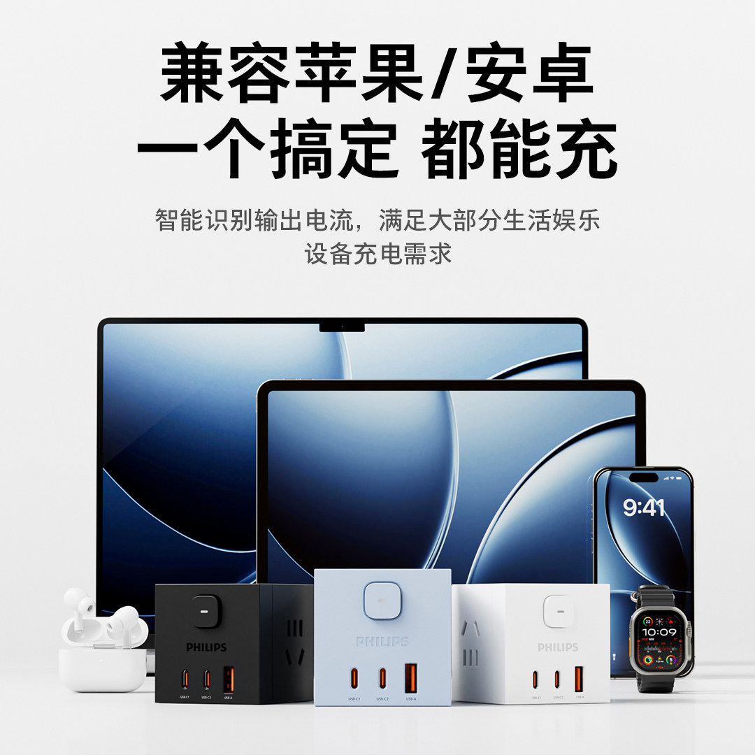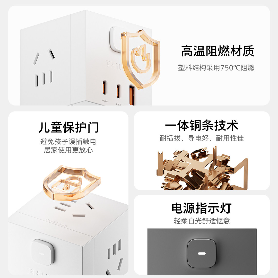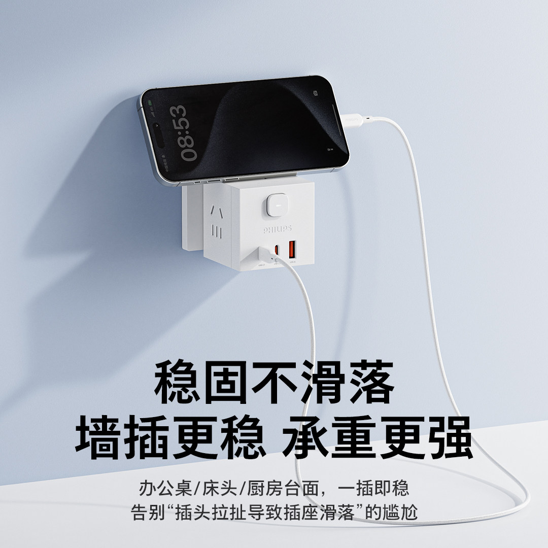 飞利浦魔方插座拓展器充电电源插头一转多功能国标无线家用便携式
