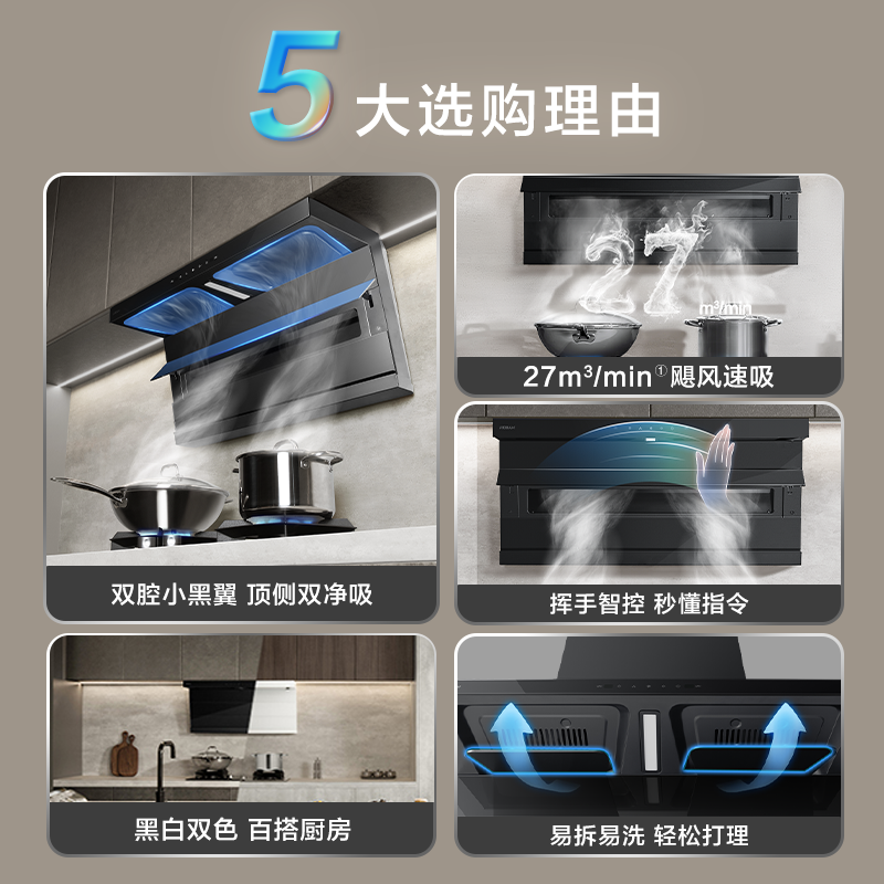 [小黑翼D1P套系]老板大吸力烟灶套装油烟机燃气灶一套官方旗舰店