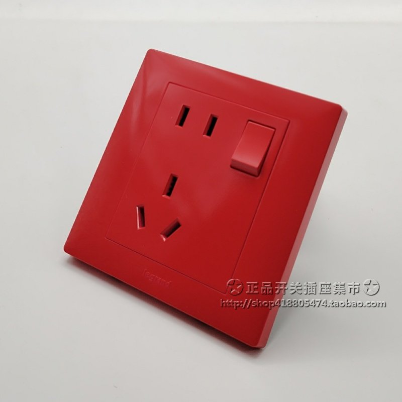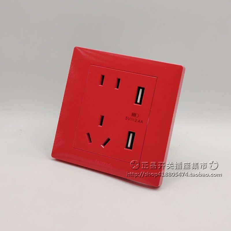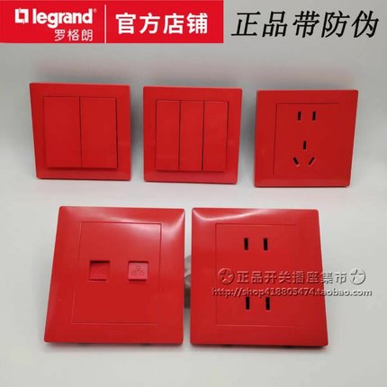 罗格朗家用红色开关插座 艺术五孔UPS不间断电源插银行警示中国红