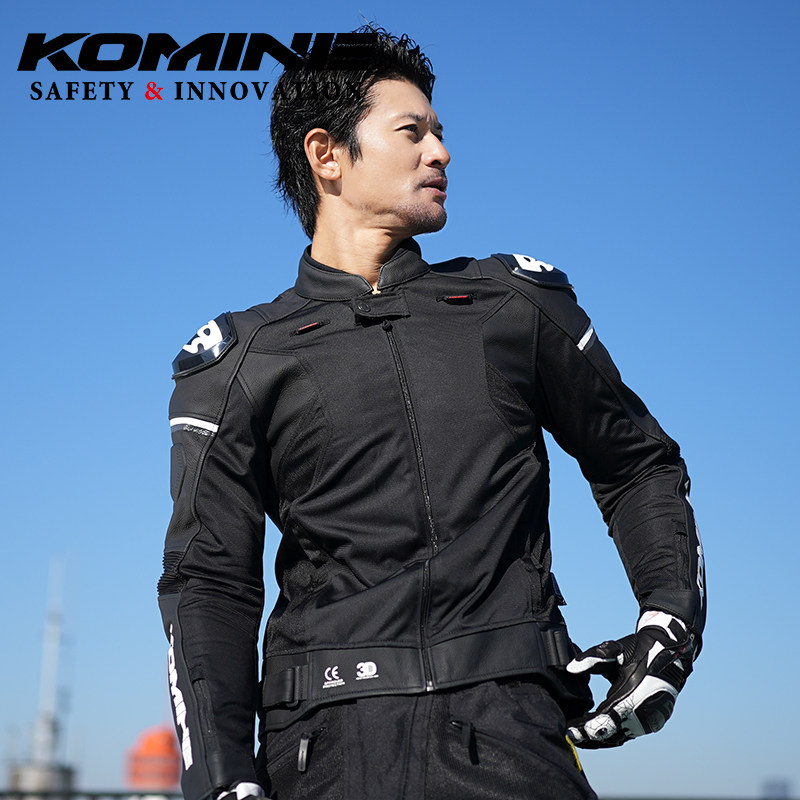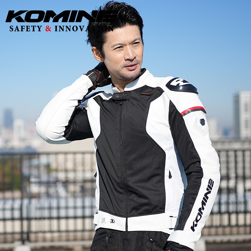 KOMINE春夏旗舰款赛道风格骑行服男牛皮革拼网眼夹克摩托车JK-167