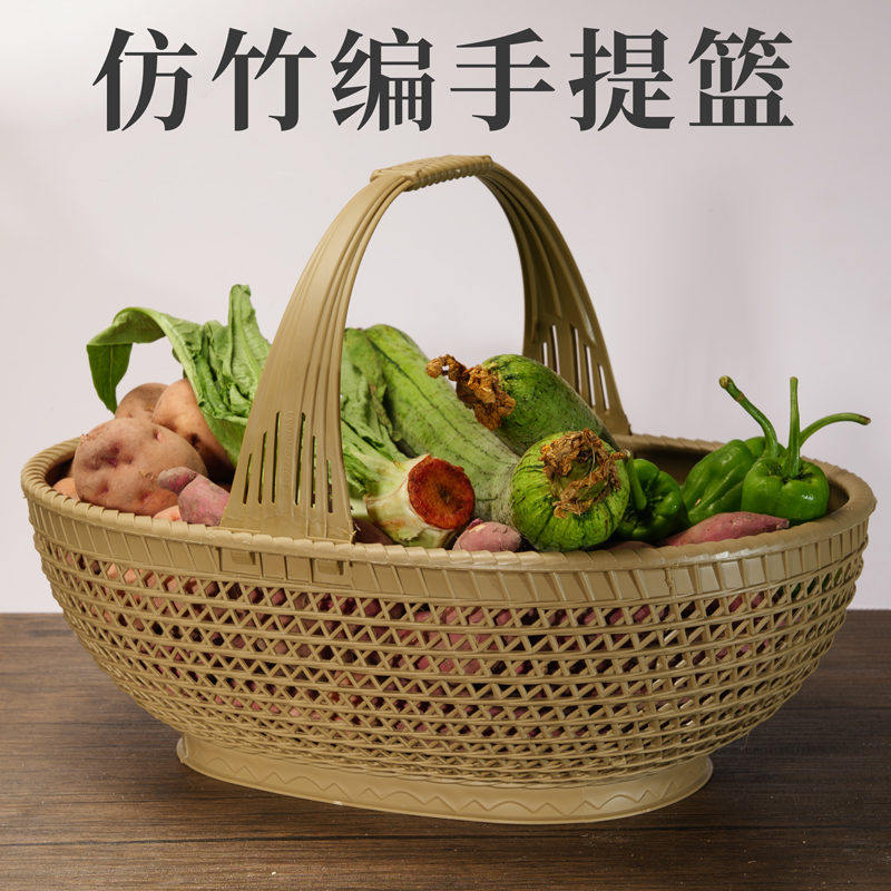 塑料篮子摘水果蔬菜捡鸡蛋手提仿藤竹编织购物筐买菜礼品结婚提篮