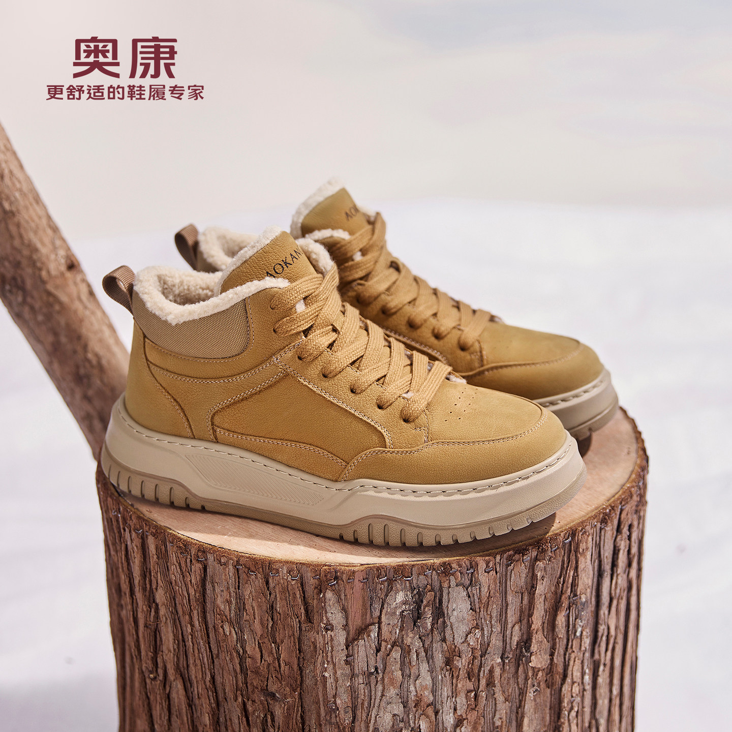 奥康 男鞋2025冬季新款休闲鞋加绒保暖舒软棉鞋平底中帮户外鞋