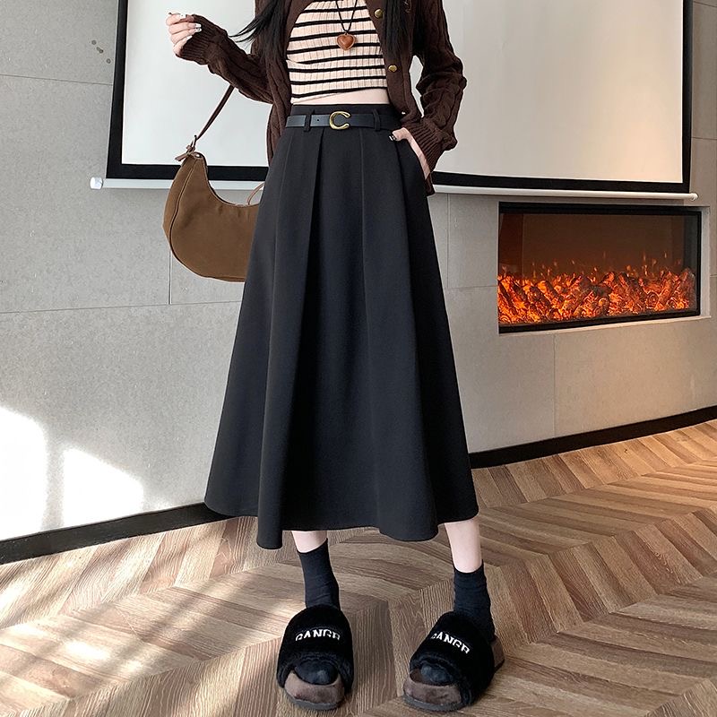 呢子半身裙女2025新款秋冬有口袋百褶裙中长款赫本风高级感毛呢裙