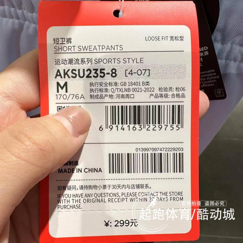 李宁男子短裤2024夏季新品中国色系列宽松休闲运动短卫裤 AKSU235
