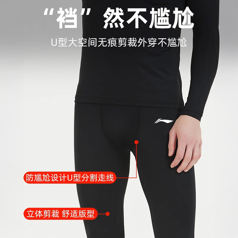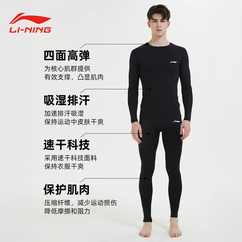 李宁健身衣服男速干紧身秋冬季跑步训练篮球打底运动套装专业晨跑