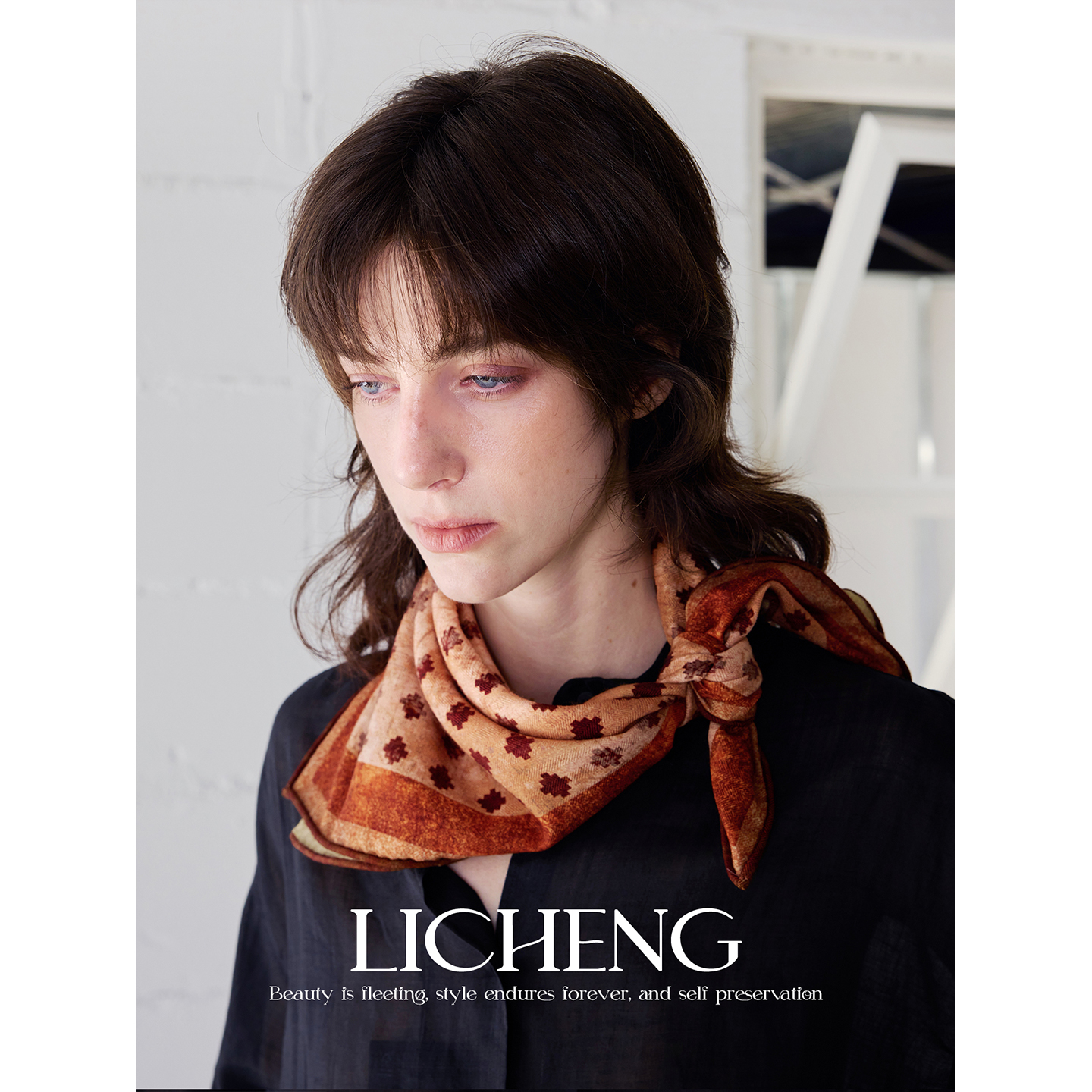 礼诚 中古侘寂uma风双面双色真丝羊毛围巾女秋冬保暖系脖丝巾方巾