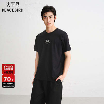太平鸟男装T恤夏双面布凉感短袖潮男字母刺绣休闲百搭短袖上衣