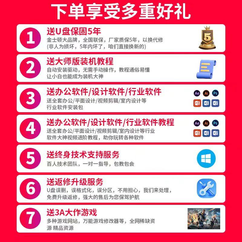 系统u盘金士顿电脑重装一键安装机win10专业7旗舰w11纯净pe启动
