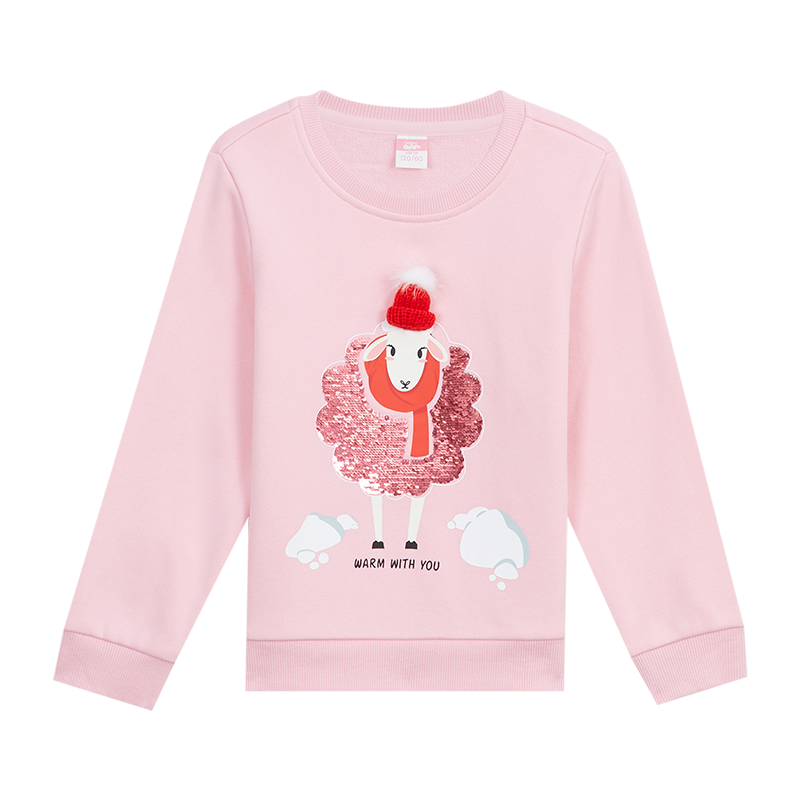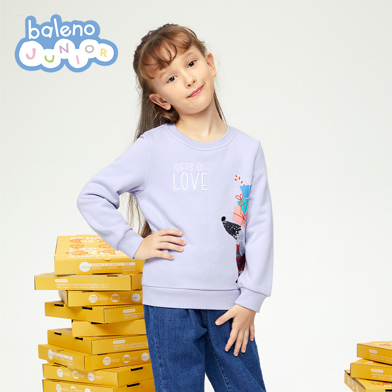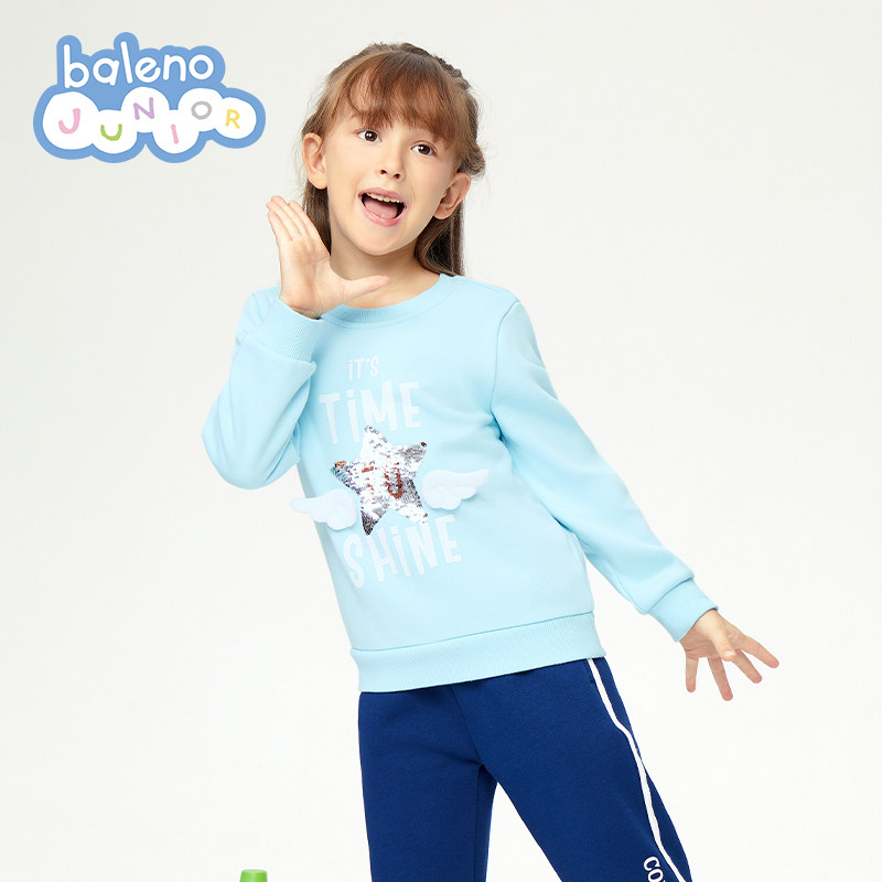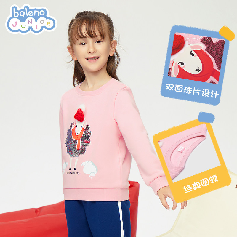 班尼路童装春装新款女童双面珠片印花长袖儿童加绒圆领卫衣