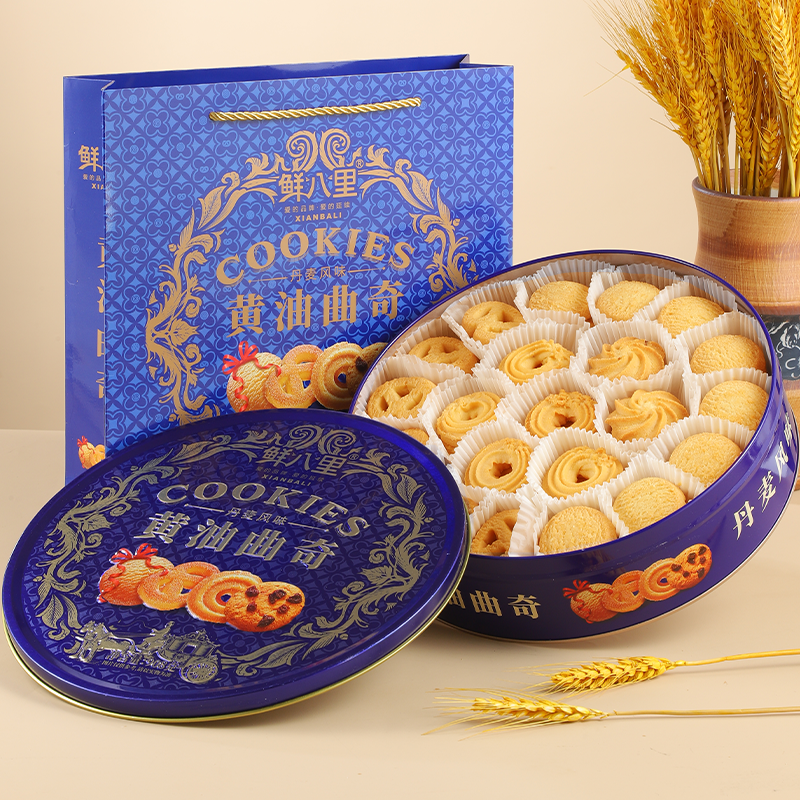 鲜八里908g铁盒牛油曲奇饼干丹麦风味礼盒装特产零食美食品糕点心