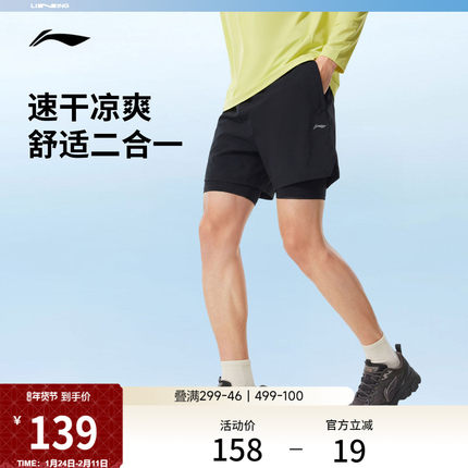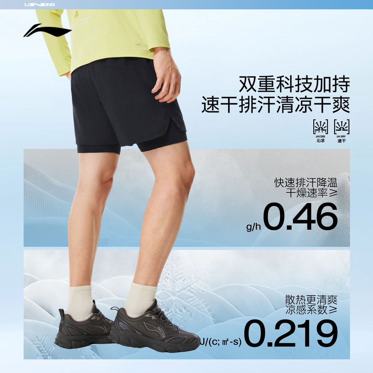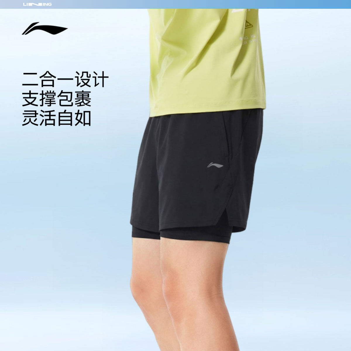 李宁运动短裤男2026新款健身裤子春季二合一内衬防走光梭织运动裤