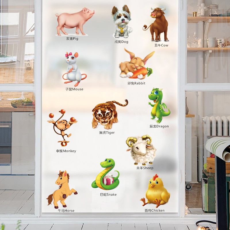 现货速发12十二生肖创意可爱动物儿童房卧室幼儿园装饰墙贴纸贴画