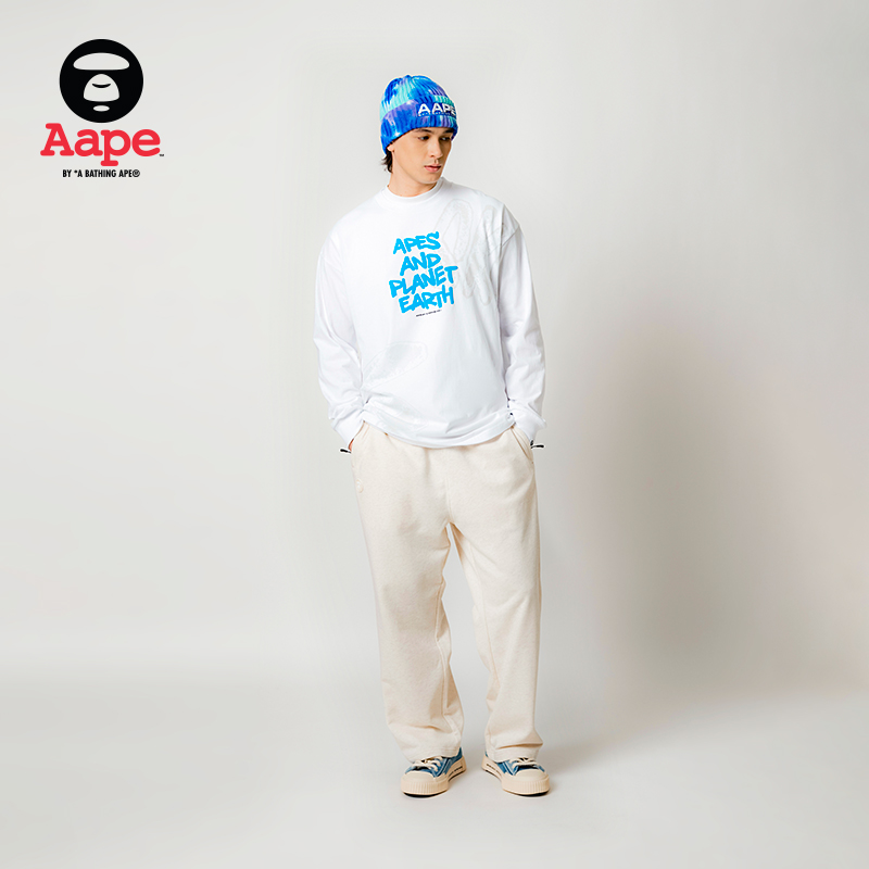 Aape旗舰店男装秋冬字母图案印花休闲潮流长袖T恤1728XXP