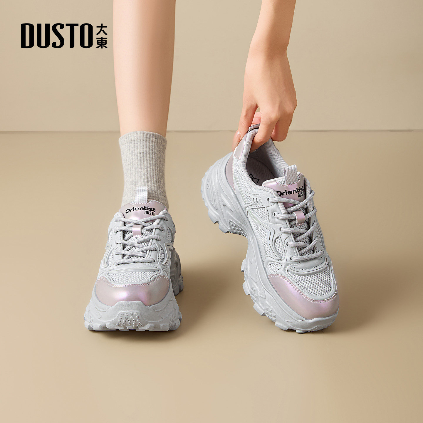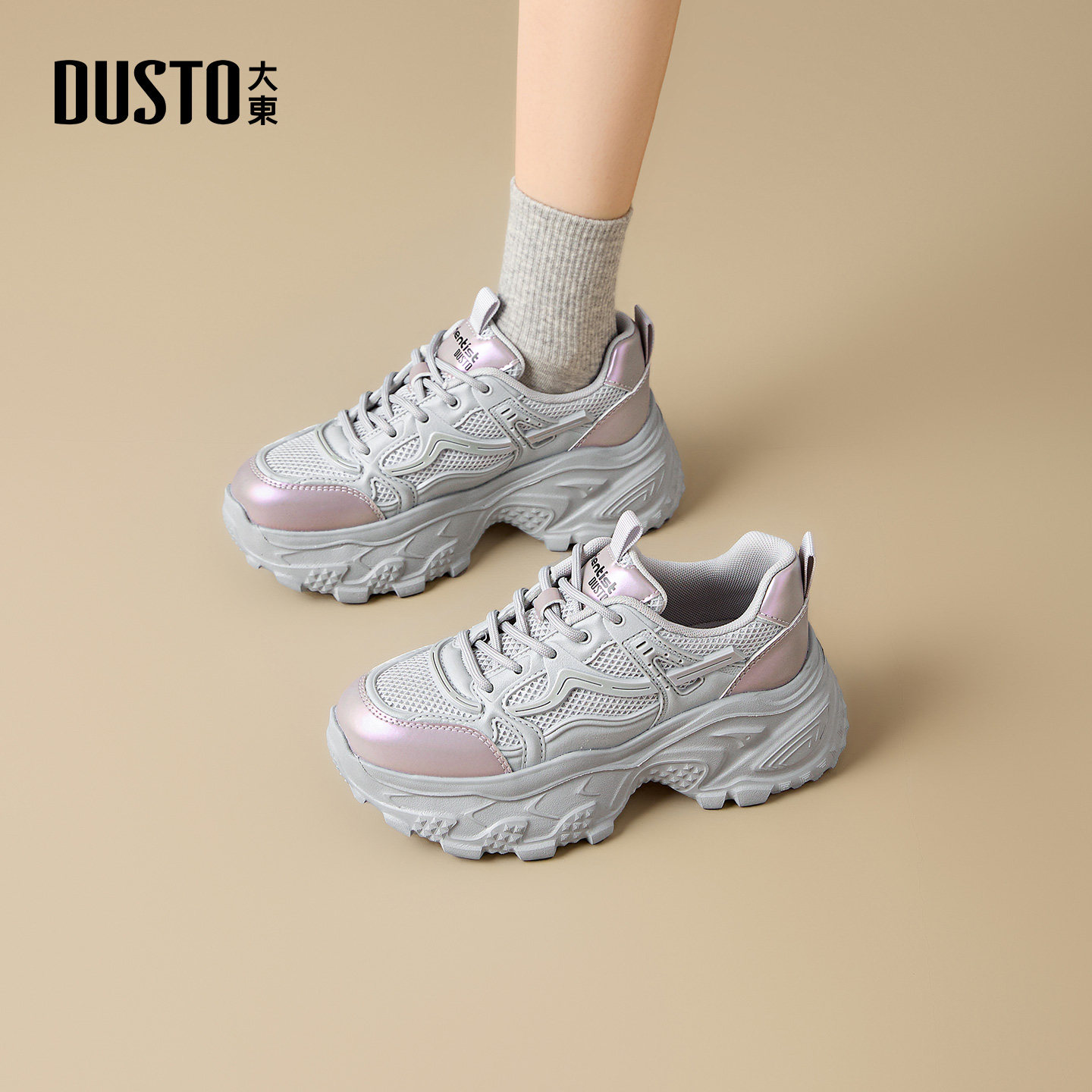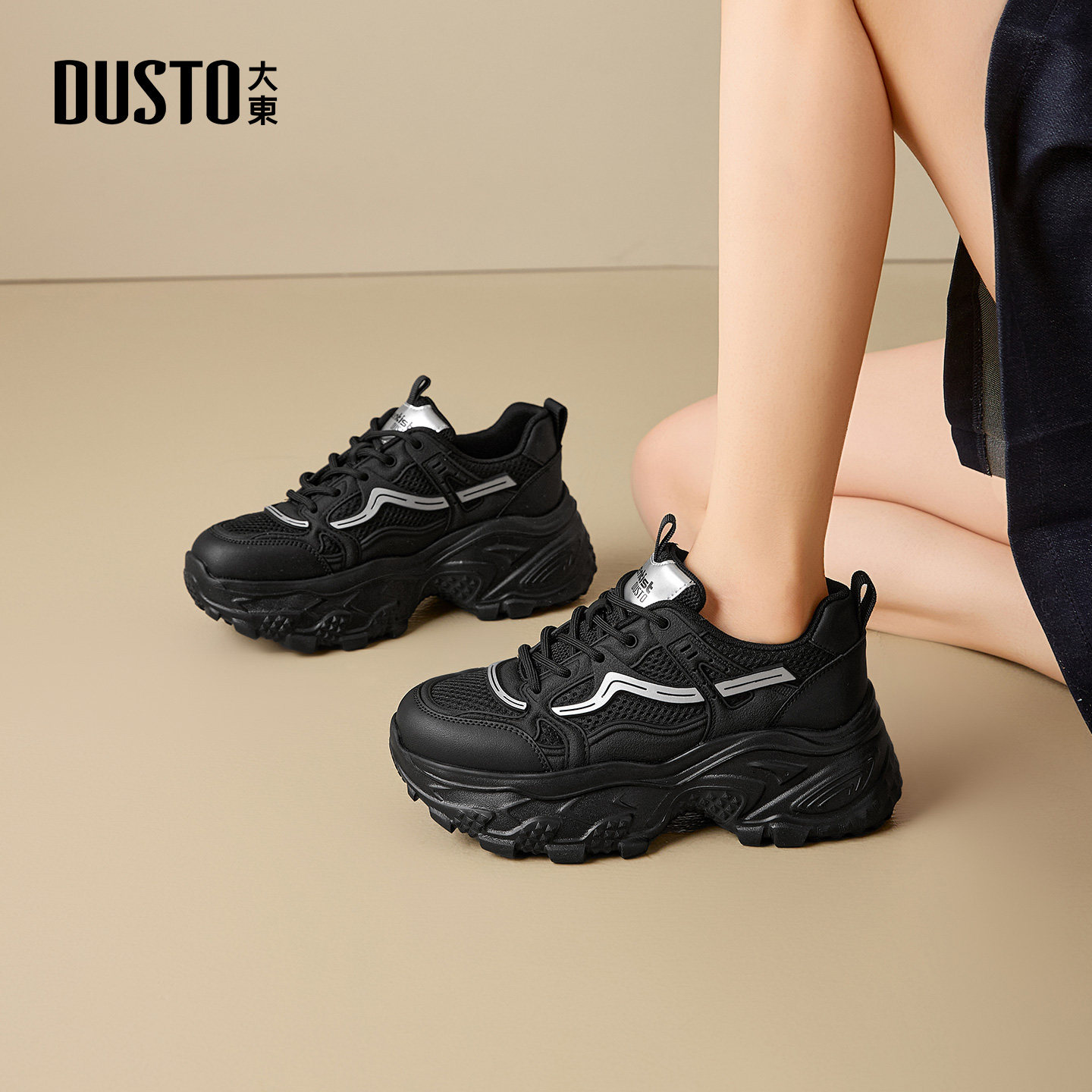 大东女鞋厚底老爹潮鞋2025秋季新款复古网面旅游轻便休闲鞋0385