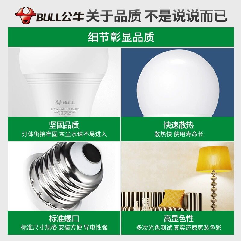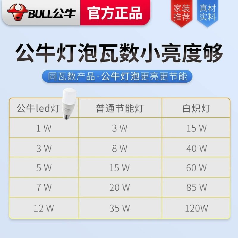 公牛led灯泡二级能效节能超亮螺旋e27螺口电灯吊灯护眼无频闪球泡