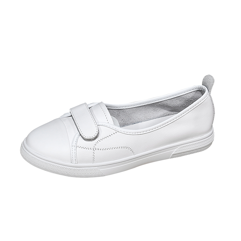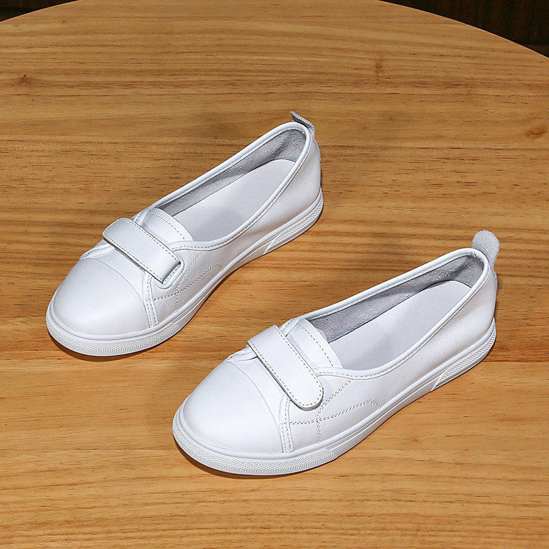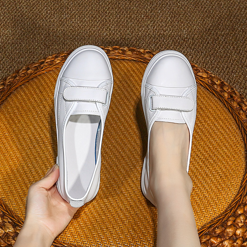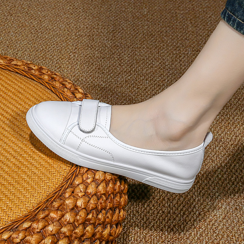 头层牛皮浅口单鞋女魔术贴一脚蹬秋季薄款女鞋百搭休闲透气小白鞋