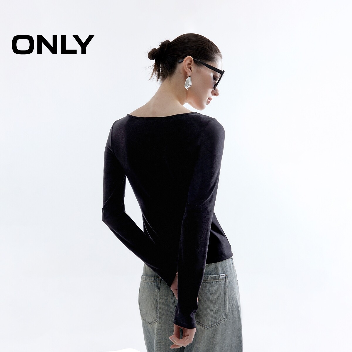 绫致ONLY2025秋冬新款纯色收腰修身显瘦大圆领长袖T恤女