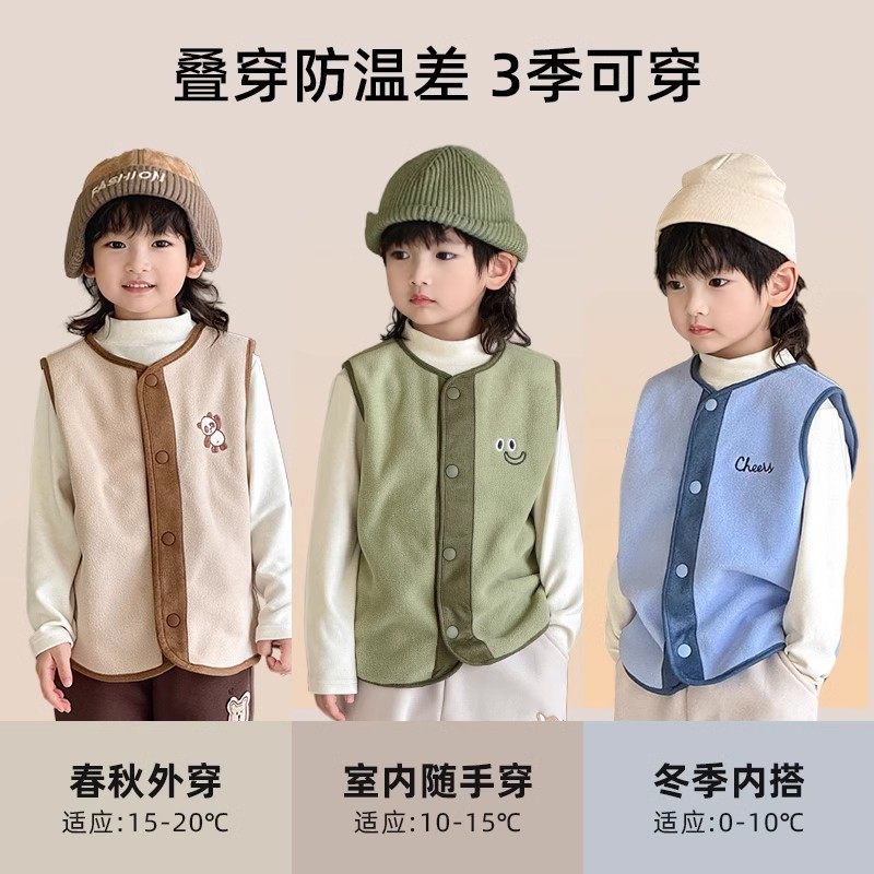 男童马甲儿童外穿背心2025冬新款摇粒绒坎肩内穿宝宝加绒校服内搭