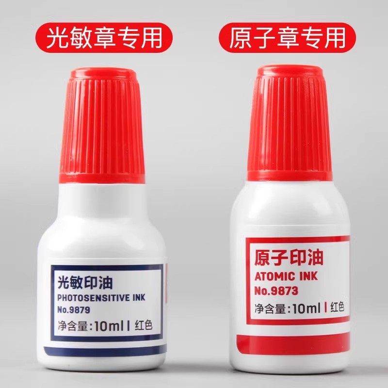得力光敏印油大瓶公章印泥油红色非原子印章油财务办公专用10ml速干印油印章水红墨水万次章印油红色公章40ml